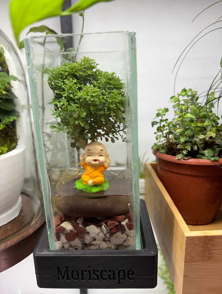 Moriscape blends “mori” (forest) and “scape” (landscape), representing miniature forest worlds designed with care.
